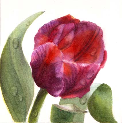 Size 4″x4″. I really like to paint on this surface. For the dewdrops I have not saved any whites and I have not add any white, since I only paint with transparent watercolors.